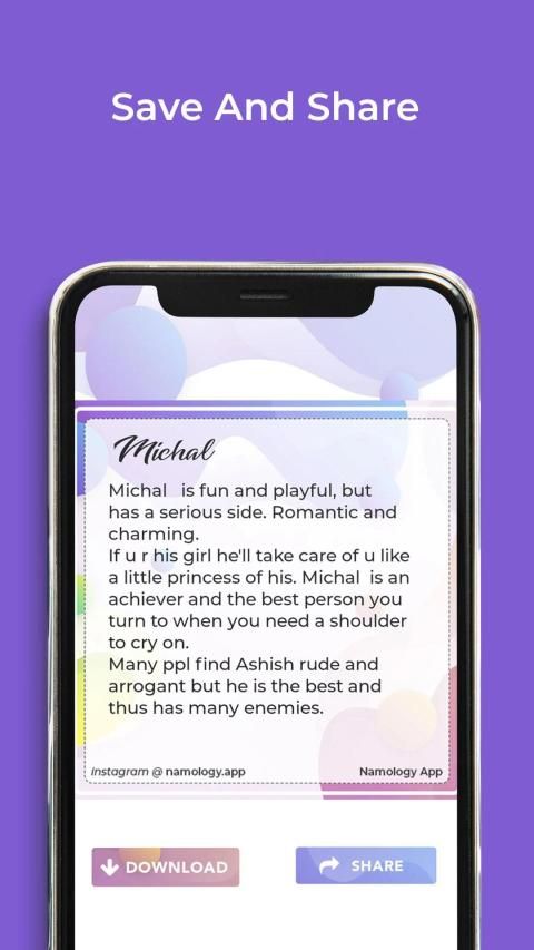 An app that clearly shows the exact meaning of your beautiful name in just one click. Check your's now. And share it with your friends,
