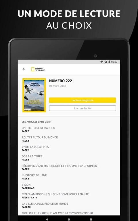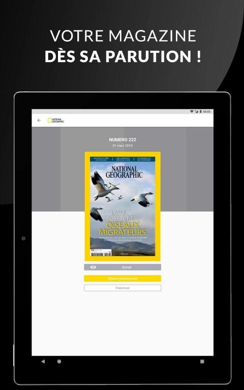 Vous êtes abonné à la version numérique ou à la version papier + numérique ? Connectez-vous depuis l'espace personnel et profitez de vos numéros de National Geographic sur votre Android !