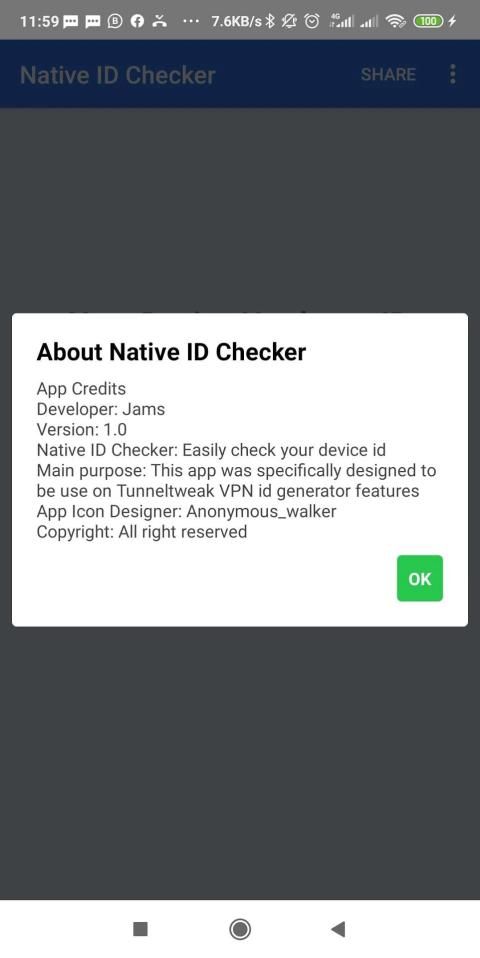 Native ID Checker menggunakan Perpustakaan Google untuk memeriksa ID perangkat keras android Anda, dikembangkan untuk menyediakan ajudan dan dukungan untuk Tunneltweak VPN yang dikenal sebagai TUT VPN untuk fungsionalitas id generatornya.