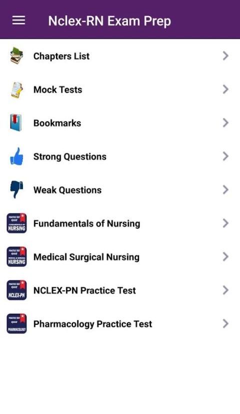 NCLEX-RN Ujian Prep aplikasi gratis membantu untuk mempersiapkan Anda NCLEX-RN dan Semua Ujian Keperawatan terkait. Dalam aplikasi ini kami menyediakan bab bijaksana pertanyaan pilihan ganda membuat Anda lulus NCLEX-RN Ujian.