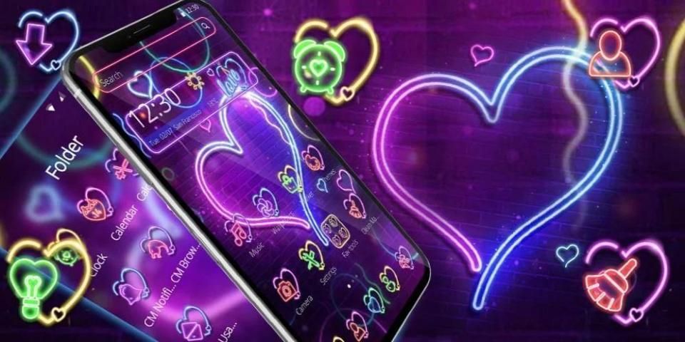 Tema Shinie Love menampilkan gambar latar Warna dan puluhan ikon Neon yang mencakup sebagian besar aplikasi yang biasanya Anda gunakan. Dengan tema Neon ini, Anda takkan pernah ketinggalan topik yang terbaru dan paling trendi.