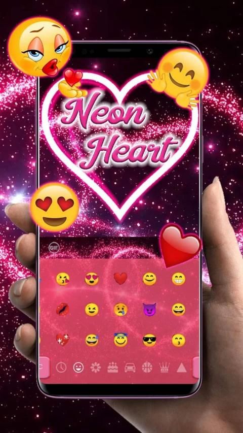 -Use Beautiful Neon Heart Keyboard Theme wallpaper for new S8,Note 8 keyboard free.