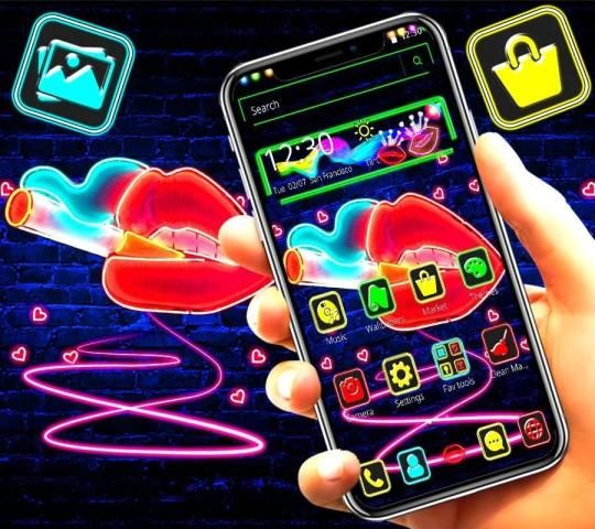 Neon lips launcher theme style.