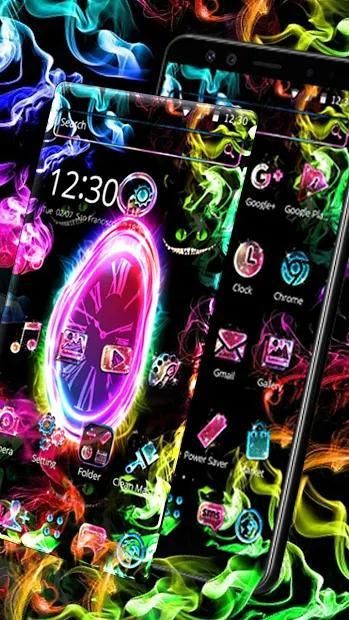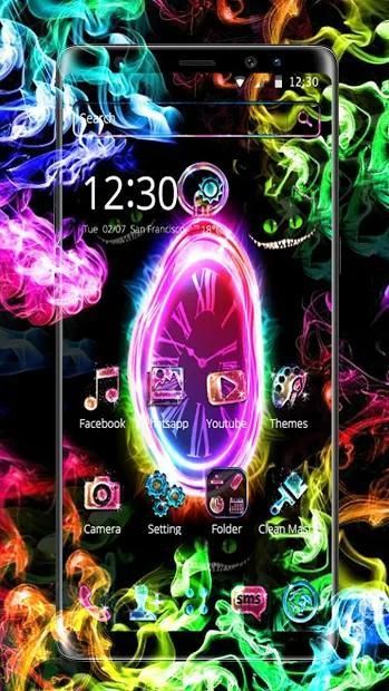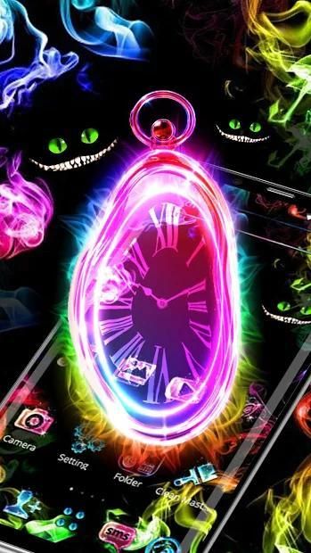 Jadikan ponsel Anda unik dengan segala macam efek animasi Neon Pink Scary Clock Tema yang keren.