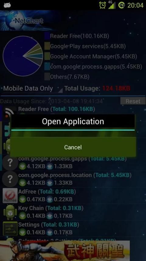 NetChart is a data usage monitor which can monitor data usage for independent app, to monitor mobile data and wifi data. NetChart also provide the download/upload usage for each app, so you can easily know where's yr data going in that app, like uploading or downloading.