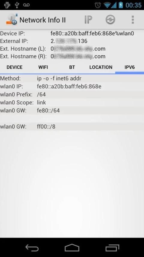 • Bagian IPv6 sekarang harus bekerja untuk semua orang. Jika itu tidak terjadi untuk Anda, silakan email saya (aschillings.dev@gmail.com) sehingga saya bisa mencoba untuk memperbaikinya. Jika memungkinkan, download 'Di bawah kap' dari pasar dan mengirim saya hasil melalui ekspor.