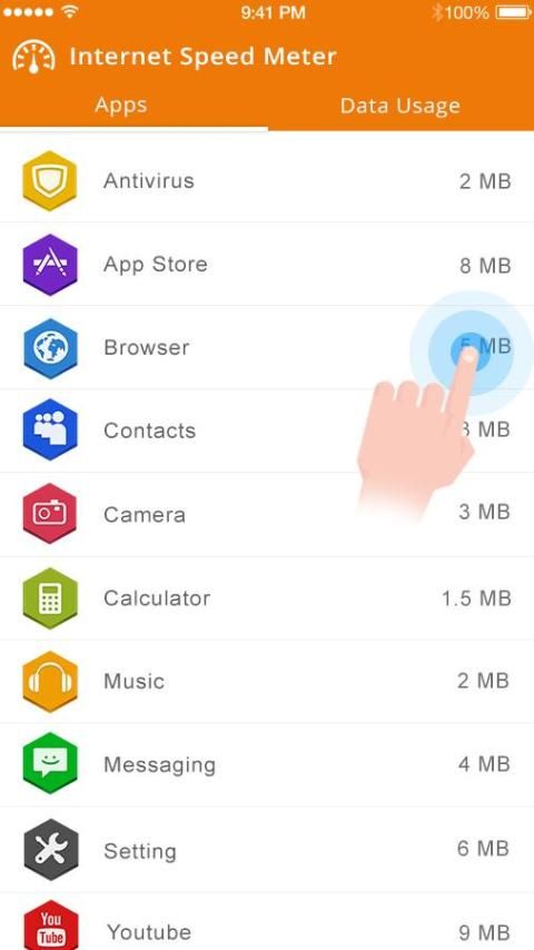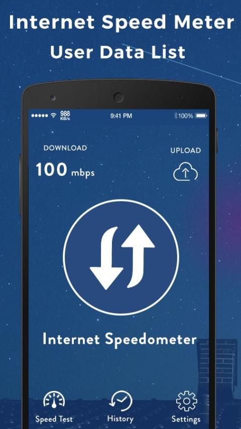 Hal ini juga menguji tes kecepatan Jaringan - memeriksa kecepatan jaringan real time dalam status bar; Data meter -Monitor dan menyimpan catatan penggunaan data internet.
