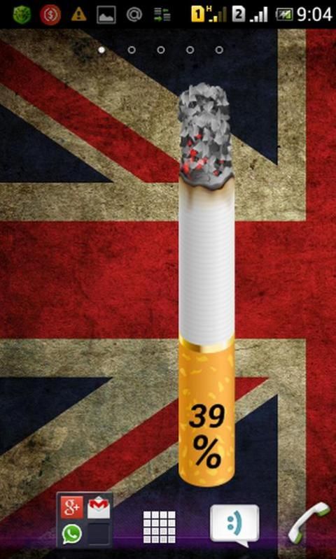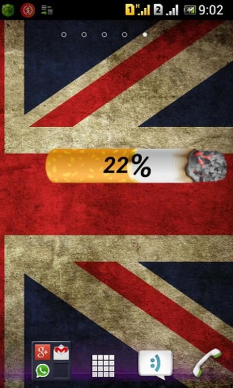 Battery widget showing decreases as the battery level in the form of a burning cigarette.