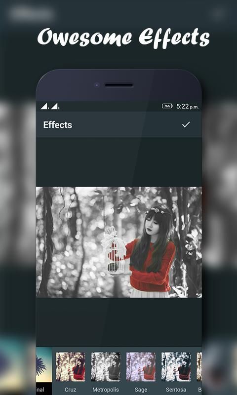 filters.select gambar Anda dan menerapkan beberapa filter dan menambahkan beberapa stiker dan gambar Anda siap untuk berbagi dengan friends.More sosial media dari 30 + efek dan stiker