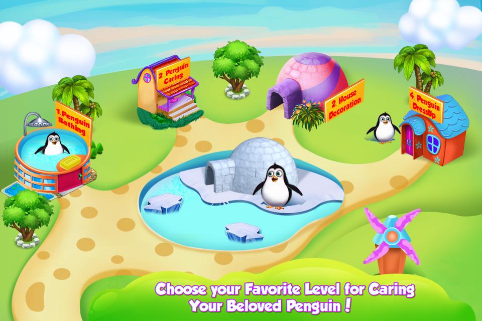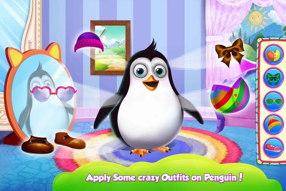 - Nurse the penguin, feed him and dress him up