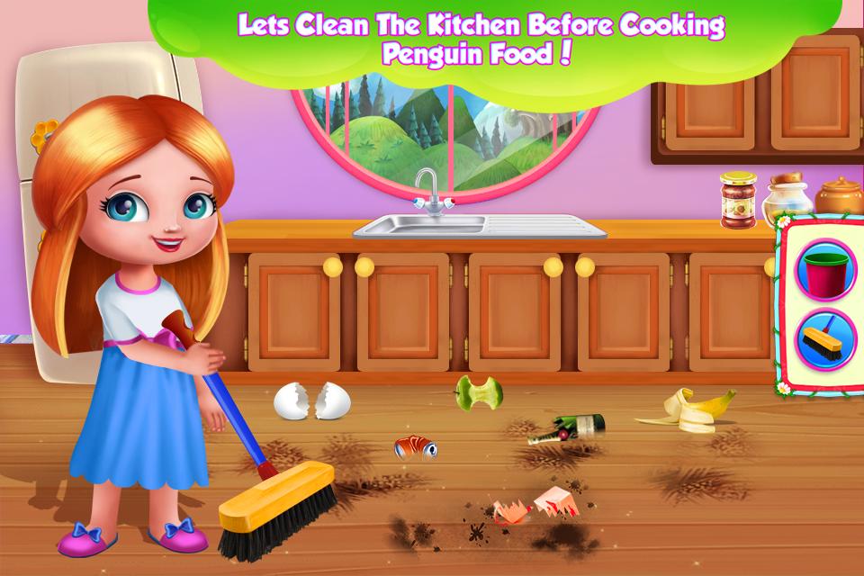 Now that he is all dolled up is time for cooking and feeding, but before that, you must clean the kitchen. There will be a lot of garbage and dirt and your job will be to clean it all. Once the washing is done, you will prepare the meals. Feed him and fulfill his wishes when it comes to food. Now you don't have to be shy when it comes to dressing up. So, add crazy colors and make this penguin a fashion item. Combine the wardrobe we have and assemble a lovely outfit for this polar animal. Use your creativity and add pretty accessories to complete this task. Next, you will be decorating the house of the penguin to make it more welcoming and styled. Keep it simple or go with the colorful items, either way, make sure you will have a wonderful time while you prepare this animal for his new home.
