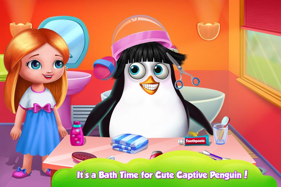 A new family member will be assigned to you so here is the best way you should test your abilities as a caretaker: play our new penguin game, in which you will definitely have a lot of fun. Not only that you get to nurse him, but you will try something in the kitchen and in the fashion area. First of all, you will start the game with a little pampering. Give him a bubble bath and make sure you clean his dirty hair. After the washing, you must take the little animal to the hair salon where you will cut his rebel hair. The teeth must be brushed too.