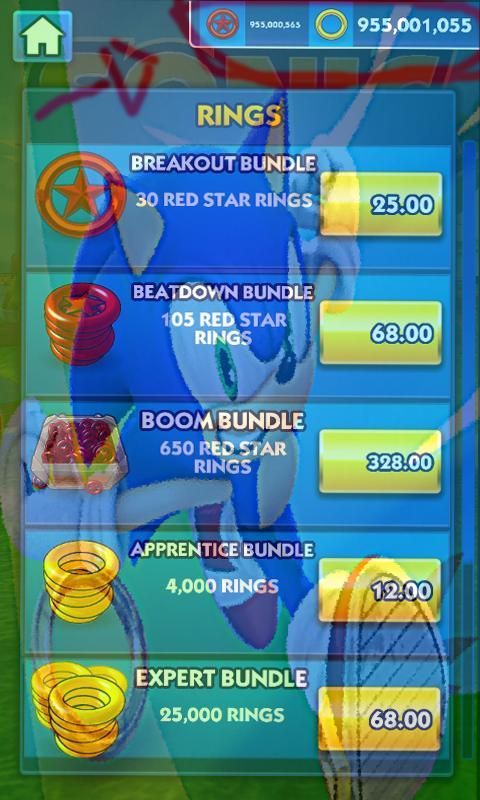 Simpan cincin merah untuk membeli karakter mata uang lain dari game ini adalah sebuah cincin dari bintang merah, yang dapat anda dapatkan secara gratis dengan pencapaian misi. Karena cukup sulit untuk mendapatkan mereka secara gratis, saya tidak akan merekomendasikan melemparkan mereka di tunggal menggunakan item atau membeli barang-barang untuk menghidupkan kembali Sonic, karena Anda akan mendapatkan skor yang lebih tinggi dengan kesabaran. Simpan untuk hal-hal yang benar-benar istimewa, seperti mendapatkan karakter lebih untuk bermain dengan.