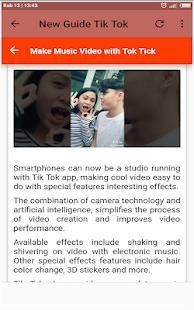 New Guide Tok Tok Complete Popular This application will teach you what Tik Tok is and how to use it. How to be famous star on Tik Tok. Designed for new generation creators. Users can create unique short videos to share with their friends. And people around the world quickly and easily.
