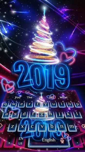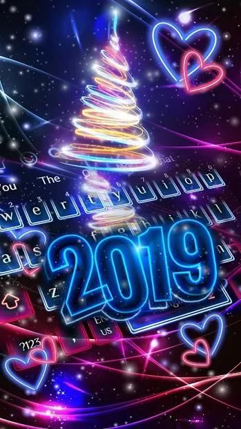Beautiful Shiny Neon New Year 2019 Keyboard Theme