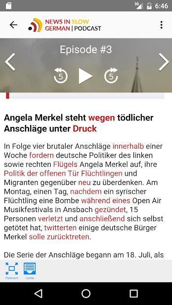 The app gives you access to all episodes aired in our weekly program News in Slow German (www.NewsInSlowGerman.com). You can listen to the episodes online and you can also download audio files and flashcards to your mobile device so you could have access to them offline. PDF viewer is needed to view PDF downloads.