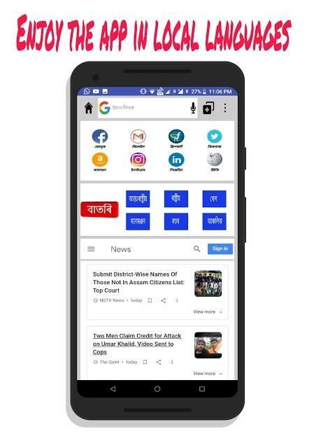 It is the first and only browser in the world to have Voice Assistant. It also comes with very high speed and secured browsing which will give you the ultimate browsing experience. The browser will also give you lots of unique inbuilt features like Webpage loading percentage, Scanner, Voice search, Cache and Cookies clearer, Location clearer along with other common features like Incognito Mode and Desktop mode, Multi tabs, Multiple Search Engine (Google, Bing, Yahoo, DuckDuckGo), history, bookmarks. The browser also comes with language option. The homepage of the browser will also give you many shortcuts for easy browsing. There is also a News section of different categories for you to get updated with the latest happening around the world.