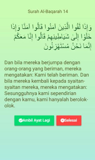 Aplikasi ini berisi ayat-ayat AlQuran lengkap, Anda akan mendapatkan 1 ayat yang belum terbaca, setiap kali Anda jalankan, demikian juga dengan pengguna lain,