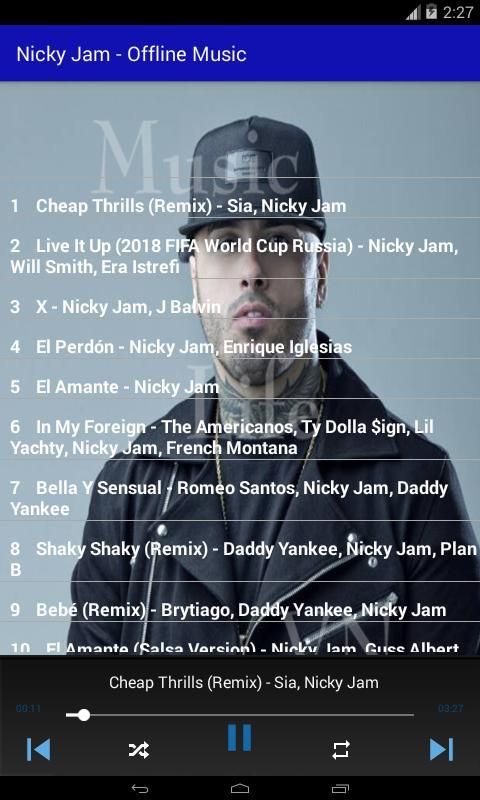 Nicky Jam - Musik Offline adalah seluruh repertoar lagu terbaik Nicky Jam untuk Anda.
