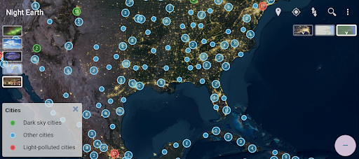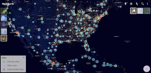 • Informasi polusi cahaya di ribuan 5.000 lokasi di 170 negara, apa yang menyebabkannya, dan langkah -langkah yang diambil untuk menguranginya