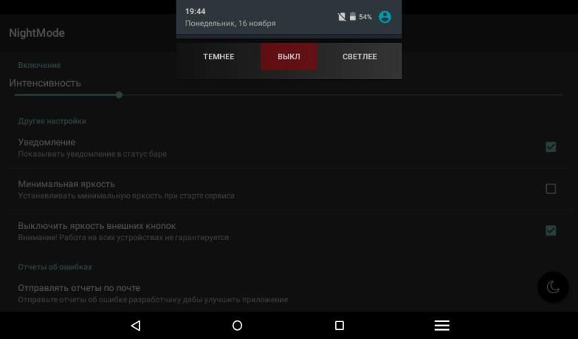 Bahkan perangkat kecerahan minimum, mata ketidaknyamanan ketika menggunakan perangkat di malam hari. Night Mode memungkinkan untuk menghindari hal ini, tidak ada sampah baterai tambahan.