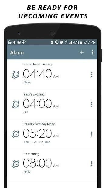 ⏰ customized alarm label: Give a suitable name to your alarm to distinguish it