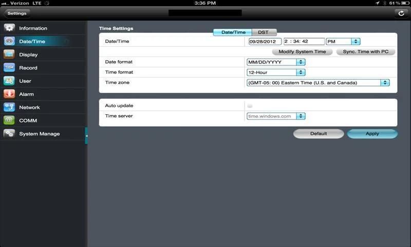 Kemampuan untuk mengakses dan pengaturan DVR dikonfigurasi