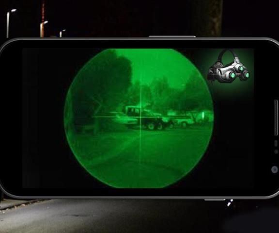 Memperbesar hidup Camera Preview dan menyalakan simulasi Night Vision Filter Kamera dengan Senter untuk meningkatkan Visi dan lebih mengenali tepi. Gunakan sekarang Phone sebagai Teropong Militer atau Telescope Kompas dengan Crosshairs membantu untuk mengukur dan menghitung jarak.