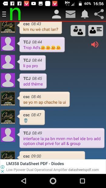 NightChat se yon aplikasyon k ap pèmèt ou rete an kontak ak zanmi w fanmi w nenpòt kote ou ye nan mond lan, w ap ka voye foto videyo ak kòmante piblikasyon zanmi w yo. Anplis w ap jwenn anpil medam k ap poste foto XXX ak videyo XXX, kote w ap ka ekri yo epi pran randevou avèk yo si yo sou menm teritwa avè w.