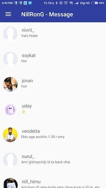 NillRonG is a popular online community in Bangladesh. This is the official messenger application of nillrong.com. You can chat with your NillRonG Friends over this application.