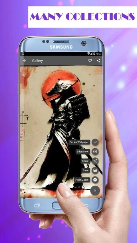 Ketika Anda telah menemukan wallpaper yang Anda ingin menerapkan di latar belakang Anda akan menemukan tombol plus (+) yang kemudian akan muncul beberapa pilihan seperti Set As Wallpaper, Slide Show, Share untuk berbagi kepada teman-teman di sekitar Anda serta media sosial, Simpan untuk mendapatkan foto dengan semua kualitas pada HD, QHD dan 4K kualitas, dan Anda dapat melihat kualitas pertama dengan pilihan Pinch Zoom.