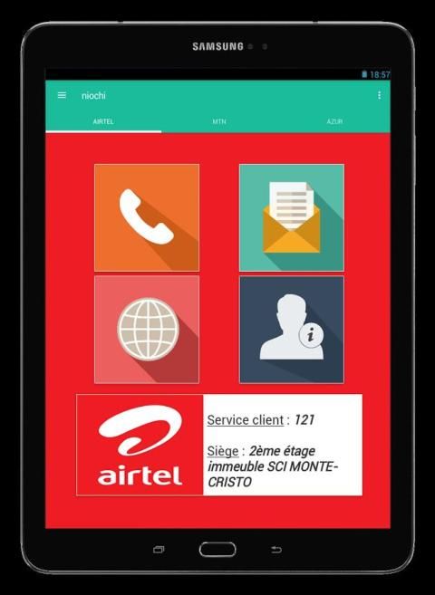 Niochi adalah aplikasi panggilan paket manajemen, SMS dan internet semua operator telekomunikasi Kongo.