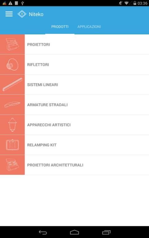 Apakah Anda seorang arsitek, desainer atau installer, Anda APP benar. Di sini Anda akan menemukan solusi yang Anda butuhkan untuk menerangi sesuai dengan peraturan lingkungan dan menggunakan teknologi mutakhir untuk manajemen cahaya tanpa mengorbankan Made in Italy desain. Selanjutnya Anda akan diberitahu tentang apa yang terjadi di bidang pencahayaan desing, dan khususnya, penggunaan cahaya dalam aplikasi perkotaan, lalu lintas, olahraga, komersial, industri, archittetturali dan jenis-jenis infrastruktur. Dalam MAGNIFICENT Eleva dan katalog produk yang anda cari pencahayaan Anda membutuhkan baik di dalam ruangan maupun di luar ruangan. Anda akan memiliki rincian yang diperlukan untuk mengembangkan proyek-proyek desain pencahayaan bersama dengan penjelasan rinci tentang karakteristik struktural dan fungsional peralatan Niteko. Aplikasi ini memungkinkan Anda untuk menelusuri semua katalog dan diperbarui pada berita NITEKO, memberikan pada saat yang sama, informasi rinci mengenai dunia pencahayaan LED. Untuk memungkinkan pencarian produk cepat dan intuitif, mereka terorganisir baik dalam kategori produk (lampu sorot, penerangan jalan dll ...) yang sesuai dengan aplikasi yang mungkin. Untuk setiap produk Anda juga dapat melihat semua foto yang tersedia, aplikasi, data dan rincian teknis, kurva fotometri dan semua aksesori dan kit yang tersedia. Kami berpikir bahwa penggunaan APA untuk mengurangi limbah kertas dan berkontribusi terhadap perlindungan lingkungan. Ini adalah bagian dari Misi "Niteko bagi lingkungan".