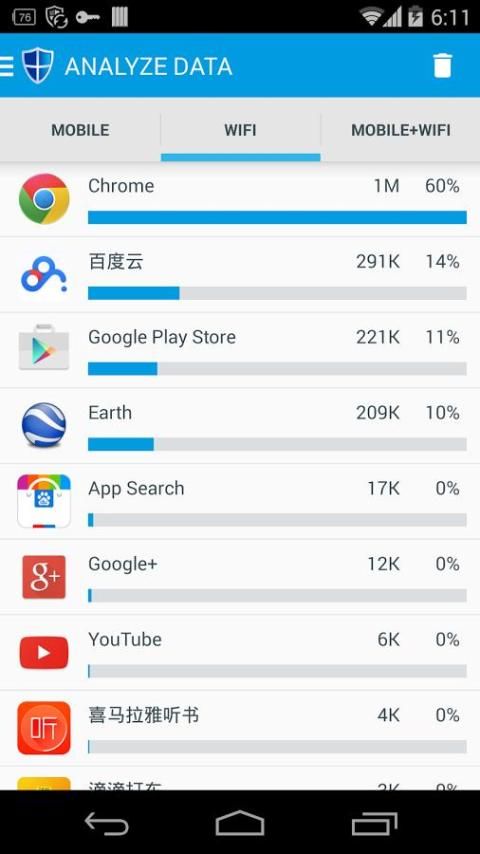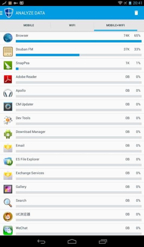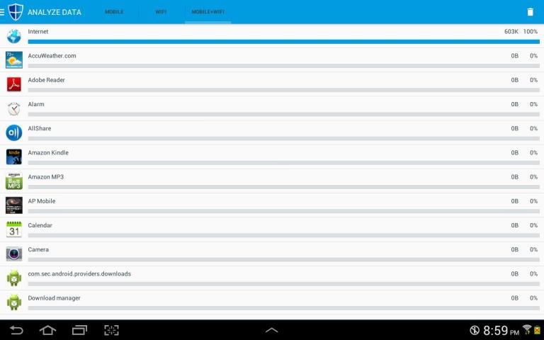 * Merekam, menganalisis dan mengurutkan penggunaan data untuk setiap aplikasi.