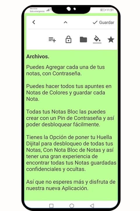 Nota Bloc es una aplicación muy bonita y fácil de usar, te da una gran experiencia para tu bloc de Notas, cuando escribes, ya que te brinda una edición muy especial a tus Notas de colores, con su contraseña de bloqueo en sus Notas agregadas, ya puedes crear tus correos, Gmail, Mensajes, Lista de tareas, Historias, y Más. y todo lo que desees anotar aquí en tu Ap con huella digital de Bloqueo o Pin Para que nadie pueda ver tu contenido.