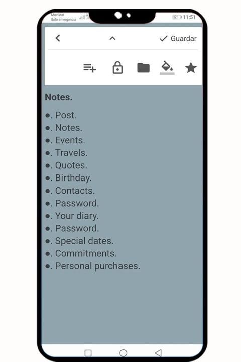 Con su lista finalizada y guardada, y todo su contenido creado en nuestra app le recuerda que no Olvide seguir agregando y creando sus Nota Bloc con su contraseña para ocultar sus Notas Diarias de Colores.