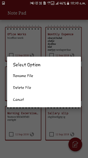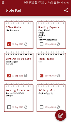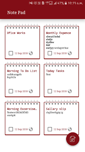 Nyaman dan sederhana Notepad tepat di Android Anda.Dengan satu ketukan pada ikon aplikasi, Anda dapat langsung menulis catatan.Ini memberi Anda pengalaman mengedit Notepad yang cepat dan sederhana ketika Anda menulis catatan, memo, email, pesan, daftar belanja, dan daftar tugas.Notepad selalu di tangan Anda, Anda hanya perlu menuliskan apa yang ingin Anda lakukan atau apa yang tidak ingin Anda lupakan, Anda bahkan mungkin tidak menyimpannya, itu akan melakukannya untuk Anda.