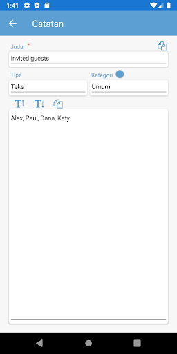 Notepad pintar memudahkan Anda menangkap pemikiran, gambar, rekaman suara, daftar periksa, ulang tahun, info masuk, dan kata sandi. Anda dapat dengan mudah mengaturnya dan menemukannya dengan cepat nanti. Notepad membantu Anda menyimpan semua informasi.