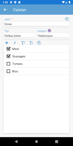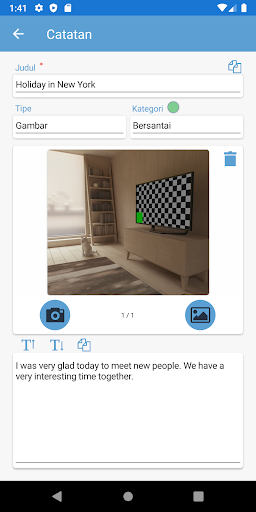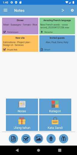 Notepad dengan catatan, daftar periksa, gambar, rekaman suara, dan kata sandi
