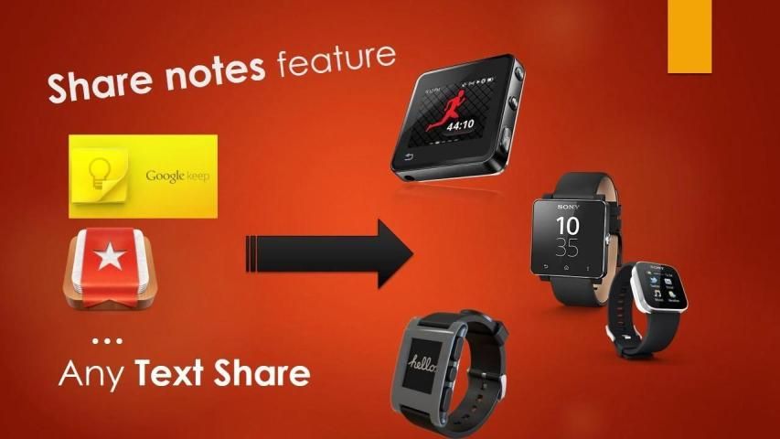 * Kirim catatan dari app catatan disebut Anda (Google Terus, Wunderlist, Evernote dan sebagainya) ke smartwatch Anda.
