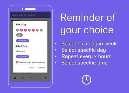 Get reminded for day within a week, daily or at specific day.