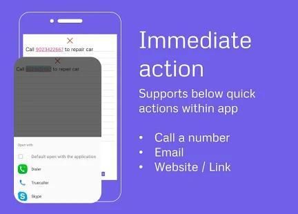 Immediate action within app. For example - if you have set reminder - "Call 9235399553", it will not only show a reminder but you can just tap at number for quick action - Call. Isn't it great. Currently app support, call, email and website link for quick action.