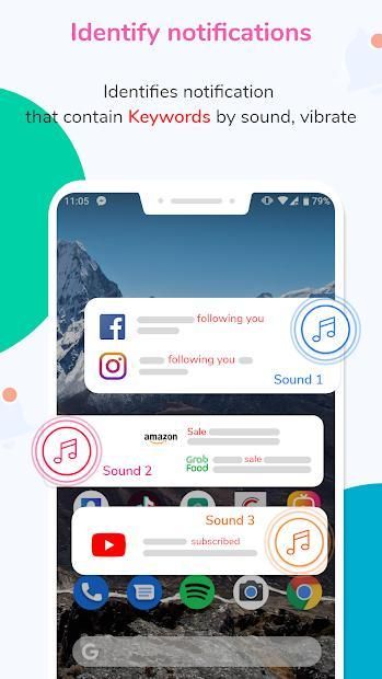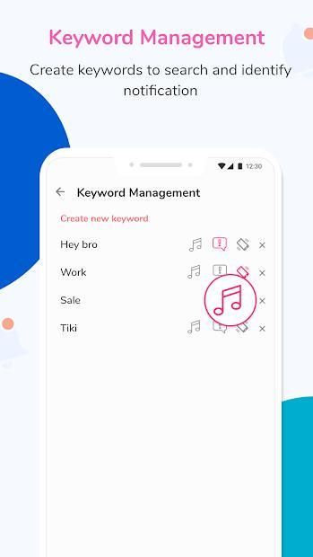 - Set different Sound for each Keyword help to identify the notification containing the Keyword