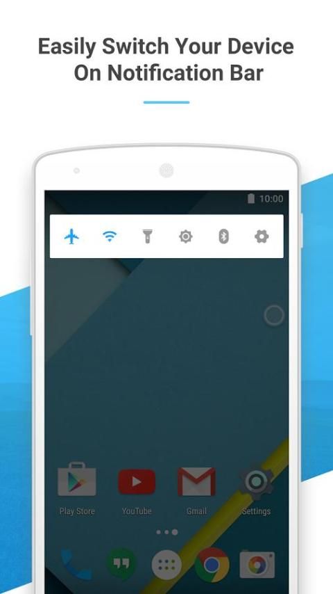 --Itu akan menyediakan cara tercepat untuk mengaktifkan / menonaktifkan model perangkat keras Anda, seperti wifi, GPS, senter, mobile data, kecerahan, bluetooth, layar timeout, indikator baterai dan setiap pilihan pengaturan yang Anda inginkan.