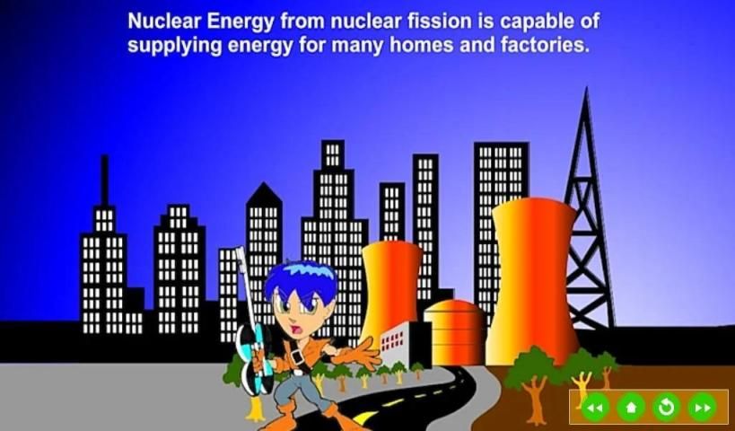 Modul ini menyajikan sumber energi nuklir melalui animasi grafis dari fisi dan fusi. Ini juga mengkategorikan melalui simulasi manfaat dan efek berbahaya dari energi nuklir pada umat manusia.