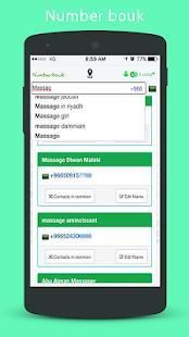 Hal ini juga mencari sejumlah apakah itu lokal atau di seluruh Arab atau seluruh dunia. Numberbook (buku Number) aplikasi mengidentifikasi hampir ratusan rekor juta di (Arab Saudi (KSA) - Uni Emirat Arab (UEA) - Kuwait (KW) - Bahrain (BH) - Oman (OM) - Qatar (QA) - Yaman ( YE) - Jordan (JO) - Lebanon (LB) - Suriah (SY) - Mesir (EG) - Irak (iQ) - Maroko (MA) - Tunisia (TN) - Aljazair (DZ) - Sudan (SD) - Palestina ( PS) - Turki (TR) - Iran (IR) - Libya (LY) - Komoro - Djibouti - Mauritania - Somalia - India - Prancis - Amerika kerajaan - Amerika Serikat - Kanada - Meksiko - Brasil - Jerman - Rusia - Cina - Jepang) .