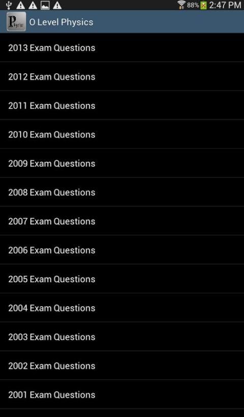 "O-Level Fisika" aplikasi adalah kumpulan pertanyaan fisika dasar dari ujian nasional 2013-1995. Aplikasi ini menyediakan ketersediaan fisika ujian nasional untuk semua siswa pada perangkat mobile mereka (tablet, smartphone). Siswa sekarang dapat menggunakan aplikasi ini untuk berlatih untuk memecahkan ujian nasional masalah yang paling mungkin ditemui dalam ujian sekolah menengah O-level terkait.