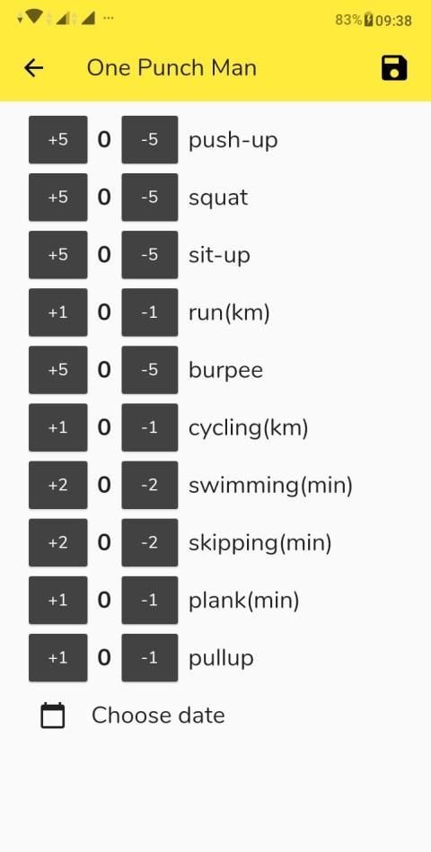 One Punch Man Exercise Tracker keeps track of the number of exercises done in a day. One Punch Man challenge includes doing 100 squats, 100 pushups, 100 situps and 10 km run every single day. Apart from these 4 exercises, other common exercises are also added and an option to customize the amount of exercise.