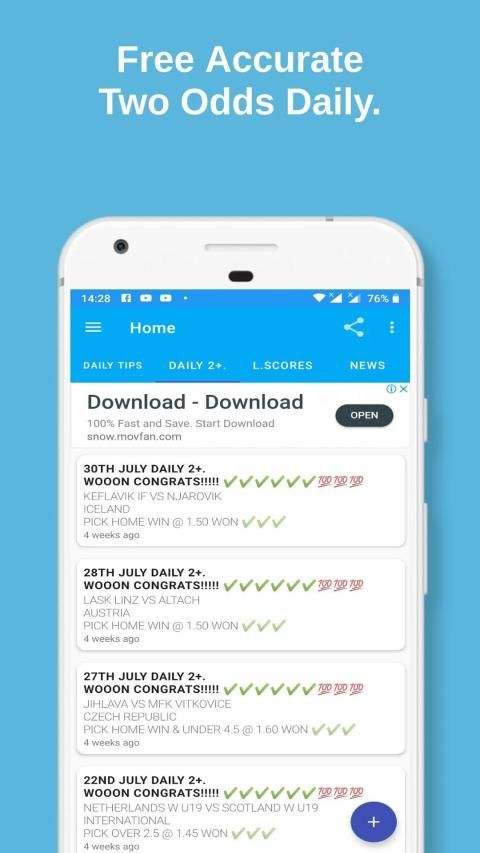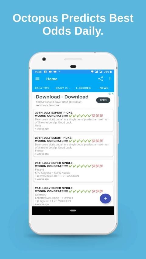 Octopus prediction is an app that provides betting tips for free. We will offer you a variety of soccer and football predictions.