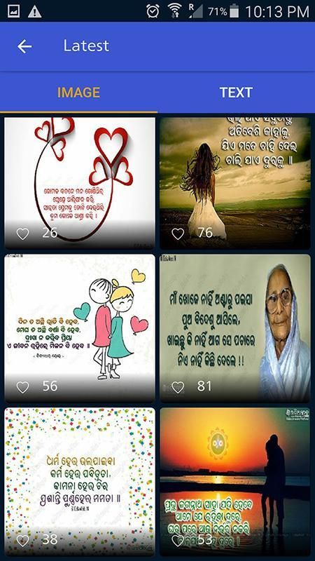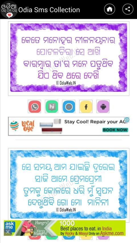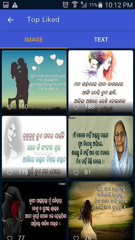 Odisha's only application contains largest collection of sms in odia language. Install it and start sharing sms with your friends on any social network.